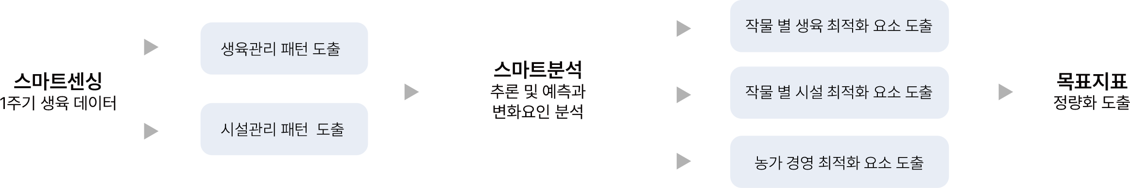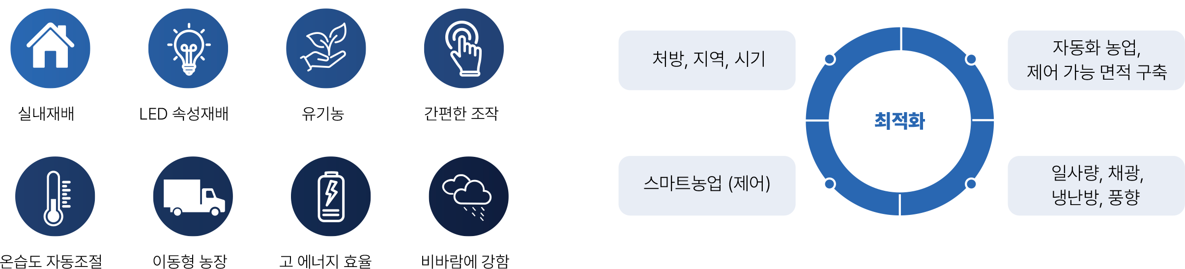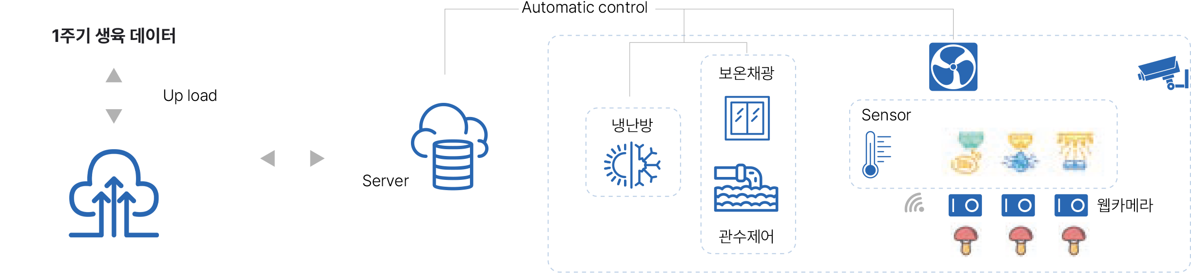 농생명 관련 생애주기를 관리하는 스마트팜 플랫폼을 연구개발하고 있으며, 4차 산업의 핵심기술 (Internet, Cloud, BigData, Mobile)을 활용하여 재배부터 수확, 판매까지 모든 과정을 저장하고 분석하여 농업의 어려움을 해소하고 안정적인 생산량을 유지할 수 있도록 ICT 솔루션을 제공합니다.