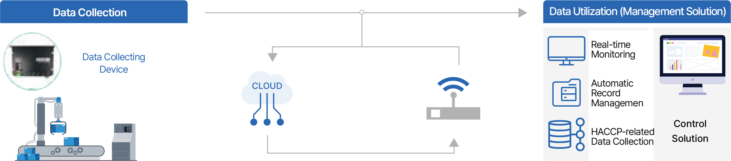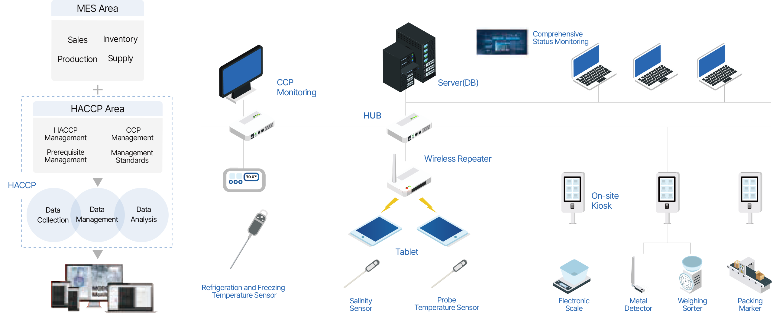 This system aims to automate the monitoring process of CCP and to computerize data recording management in order to ensure the reliability of HACCP record keeping. By automating various records related to HACCP operations, data analysis has become more convenient, and the system has been expanded to include the usage of data from production management to inbound/outbound management.